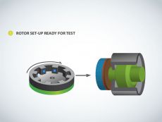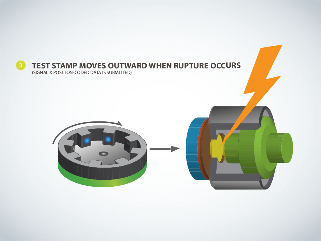 The principle of the new CAT-TechnologyTM is as simple as ingenious. Centrifugal force is applied to up to 8 sample assemblies. The load increase is programmed by variation of rotor rpm. If the applied load exceeds the tensile strength of the sample-assembly, the test stamp (TST) changes its position within a guiding sleeve.