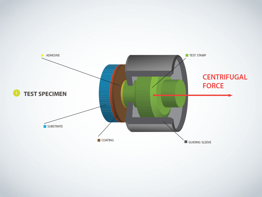 For materials testing, we have developed the Centrifugal Adhesion Testing-Technology for the comprehensive determination of adhesive, bonding and composite strength.